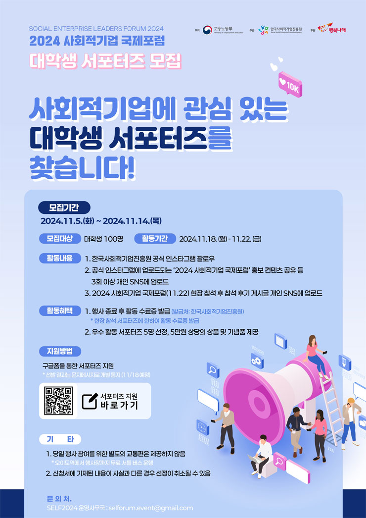 2024 사회적기업 국제포럼 대학생 서포터즈 모집