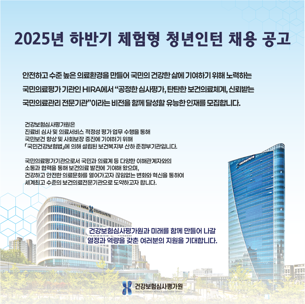 ※ 직무수행내용, 관련자격 등은 [별첨1] 직무설명자료 를 참고하여 주시기 바랍니다. ※ 모집분야별 적격자가 없는 경우 상기 채용예정인원 미만으로 채용할 수 있습니다. □ 공통 자격요건 ❍ 대한민국 국적을 가진 자 ❍ 임용예정일(’25. 12. 26.) 기준 만 15세 이상 ∼ 만 34세 이하인 자 - ’90. 12. 27. ~ ’10. 12. 26. 출생자에 한하여 응시 가능 ※ 「제대군인지원에 관한 법률」제2조에 의한 제대군인 및 「병역법」제26조제1항 각 호의 업무에 복무하고 소집 해제된 사회복무요원이 응시할 경우 상한 연령을 다음과 같이 연장함 ☞ (복무기간) 1년 미만: 1세 / 1년 이상 2년 미만: 2세 / 2년 이상: 3세 ❍ 임용예정일(’25. 12. 26.)부터 근무 가능한 자 ※ 학업 병행 등의 사유로 근무시간 조정 등 불가 ❍ 「병역법」제76조(병역의무 불이행자에 대한 제재)에 해당하지 않는 자 ※ 군필, 미필, 면제 및 임용예정일 전일('25. 12. 25.)까지 전역예정인 자는 지원 가능 ❍ 우리 원 「인사규정」 제14조(결격사유) [붙임1]에 해당하지 않는 자 ❍ 「공직자윤리법」 제17조(퇴직공직자의 취업제한)에 해당하지 않는 자 ❍ 우리 원 인턴으로 근무한 경험이 없는 자